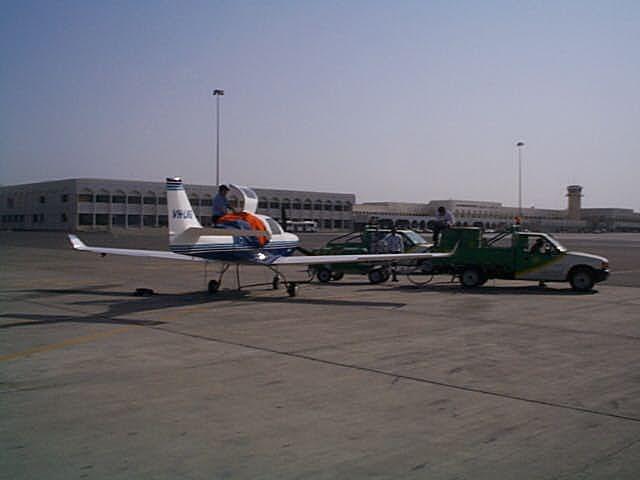 We were airborne at 0740 after carefully cross checking the way points off both GPS’s. Well before reaching top of climb we could see the mountains at Lebanon. Beirut airspace was entered inside of 10 minutes of our requested time we had requested 3 months earlier at FL230. We flew through Syrian, Jordanian & Saudi airspace with many track changes. We paralleled the Iraqi border and were questioned several times by US AWACs about type and destination. We had a great view of Dubai before changing track for Muscat. After 6 hours airborne we landed in 38 degree dry heat with a ground speed of 237.72 knots average.